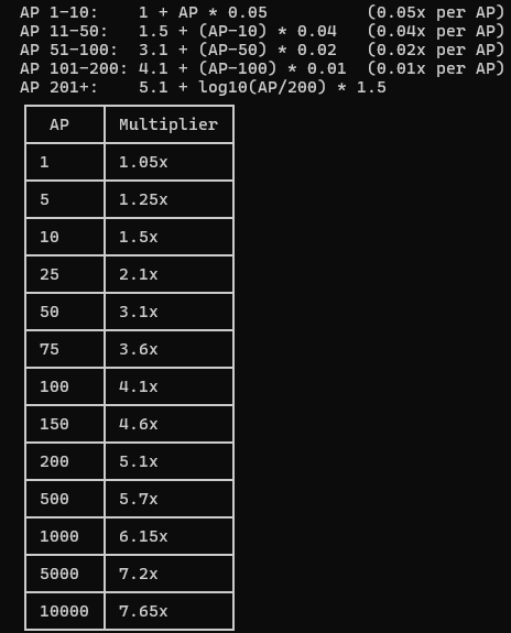 One of the upgrades released at the moment is Faith boosted by Lifetime AP, it can be a little confusing to understand so here is the formula that is used to calculate your multiplier.