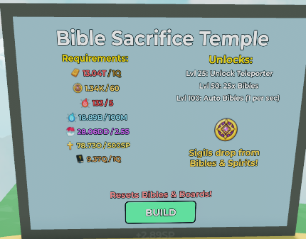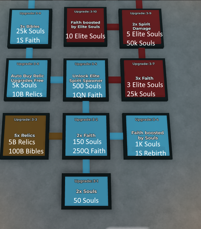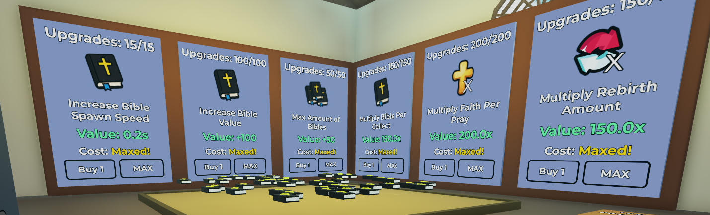 There are a few upgrades here that use Bibles, Faith, and Rebirths.
