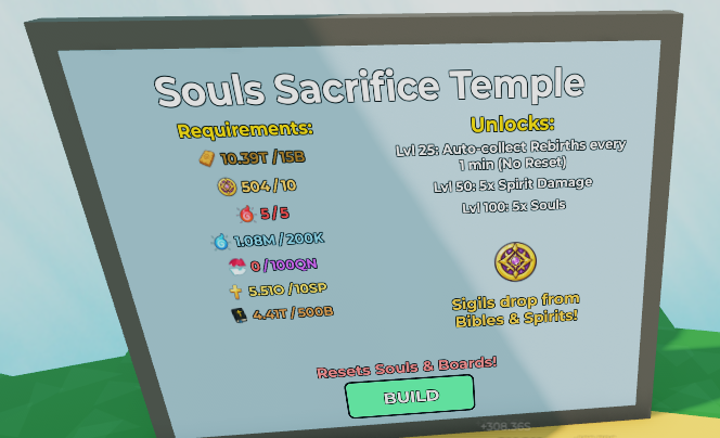 Once you unlock Temple Nodes 3–14, you can start collecting Sigils. Sigils are obtained from Souls or Bibles.