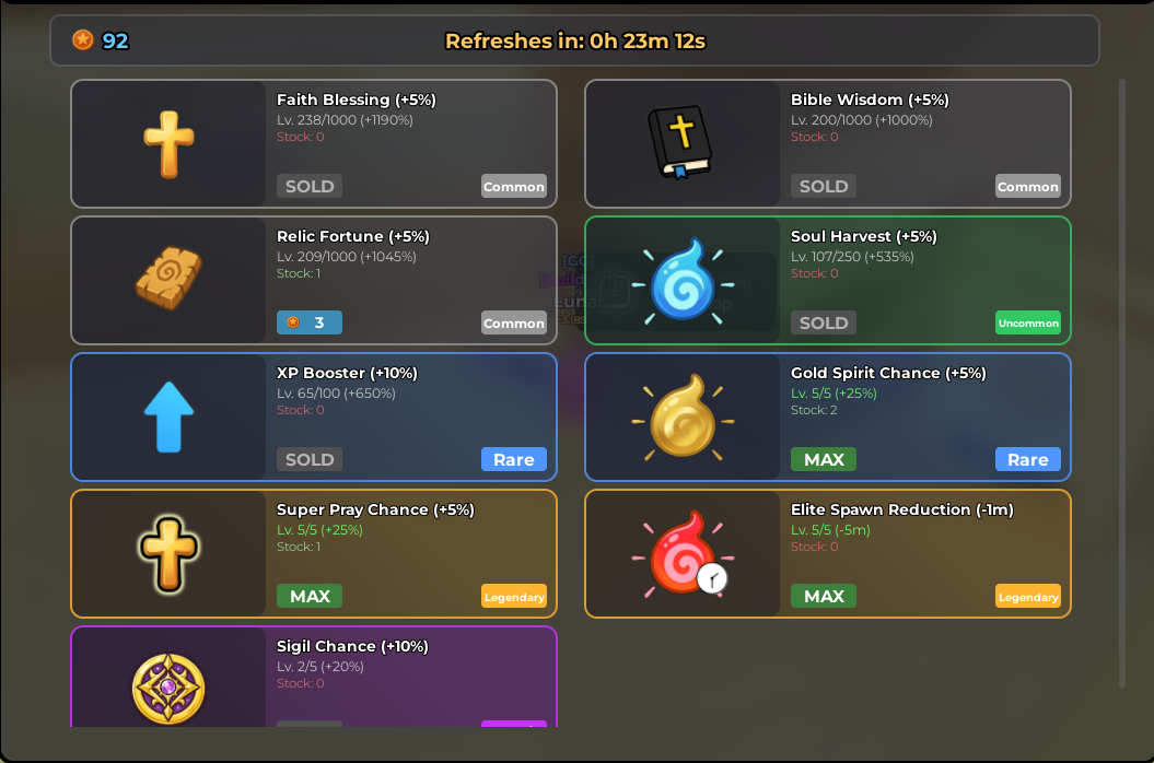 | Super Pray Chance | 20 TP |