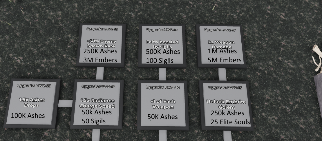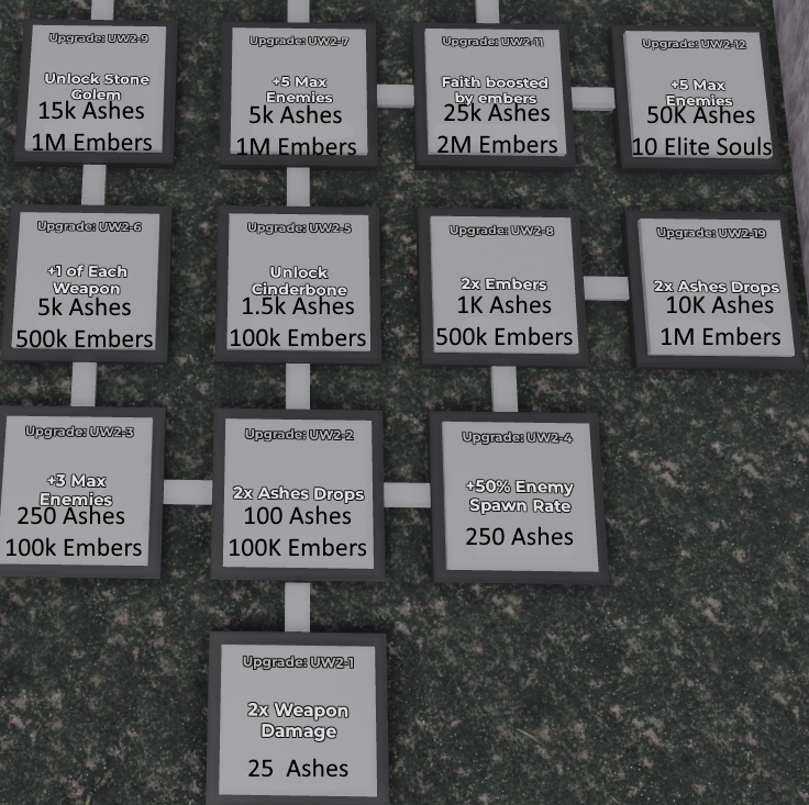 As the only living thing in sight, the undead will seek out and attack you, defeating them drops ashes which is this zones main currency which can be used on a verity of nodes to make yourself more powerful and gain more ashes.