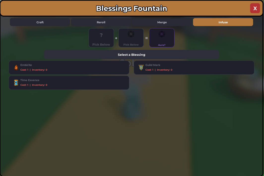 Unlike merging, you can only infuse Rare, Legendary, Mythic, and Divine blessings. Infusion has a 15% success rate, but if you fail, it does not consume your blessing.